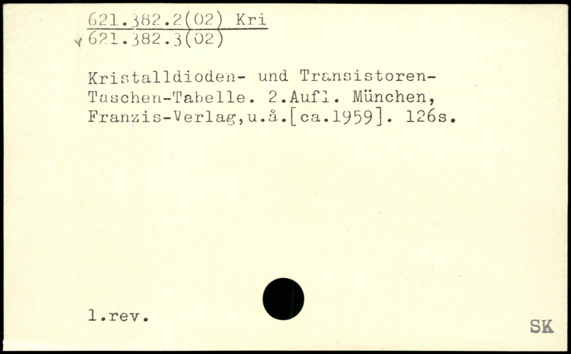 Kristalldioden- und Transistoren-Tasehen-TabeIle. 2.AufI. München, Franzis-Verlag,u.å.[ca.1959]. 126s. W SK