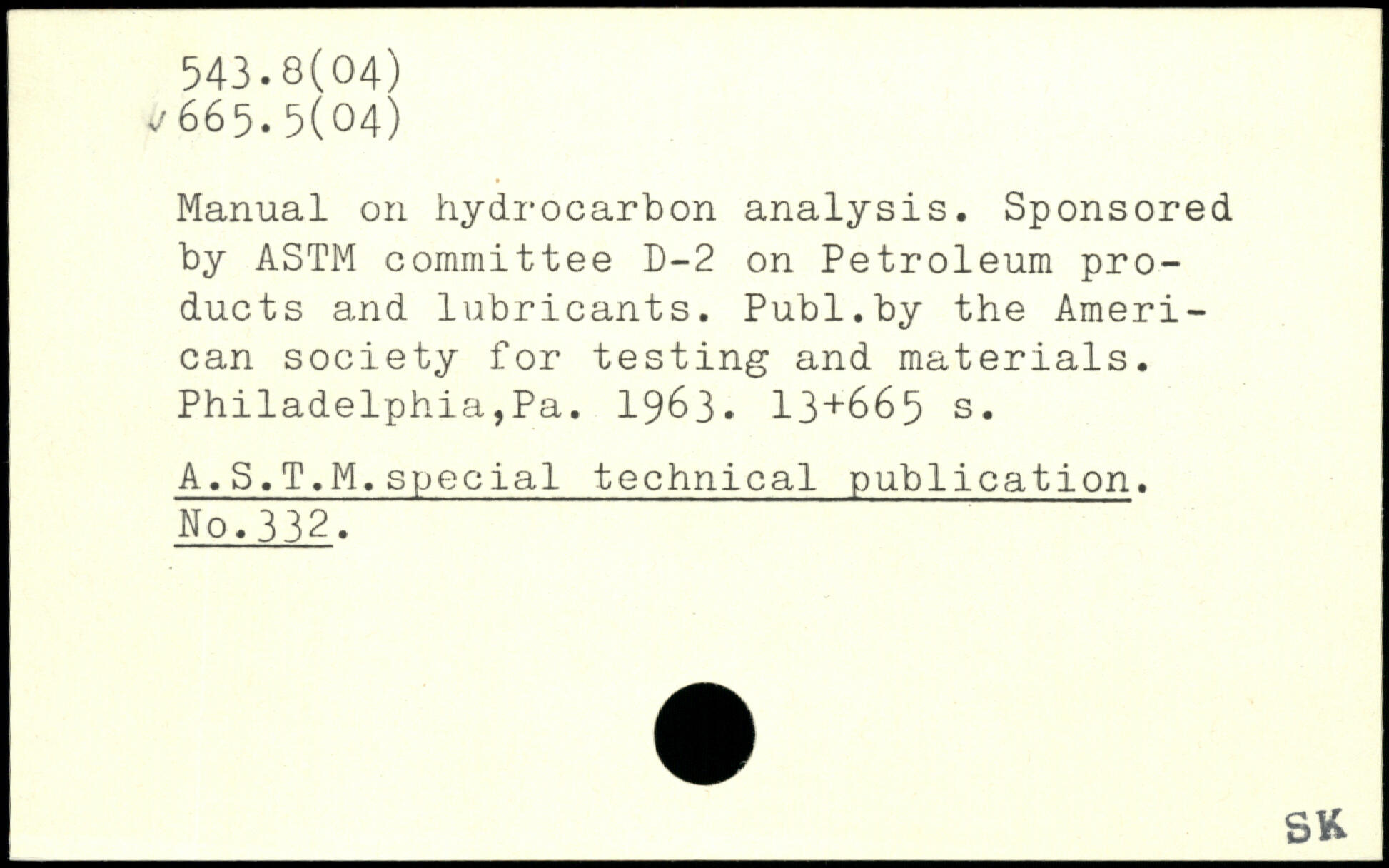 Manual on hydrocarbon analysis. Sponsored by ASTM committee D-2 on Petroleum products and lubricants.