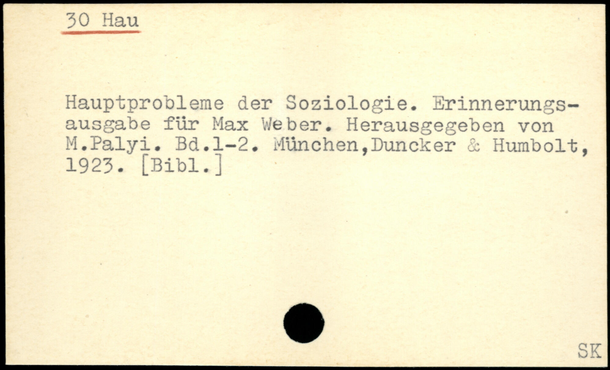 Hauptprobleme der Soziologie. Erinnerungsausgabe für Max Weber. Herausgegeben von M.Palyi.