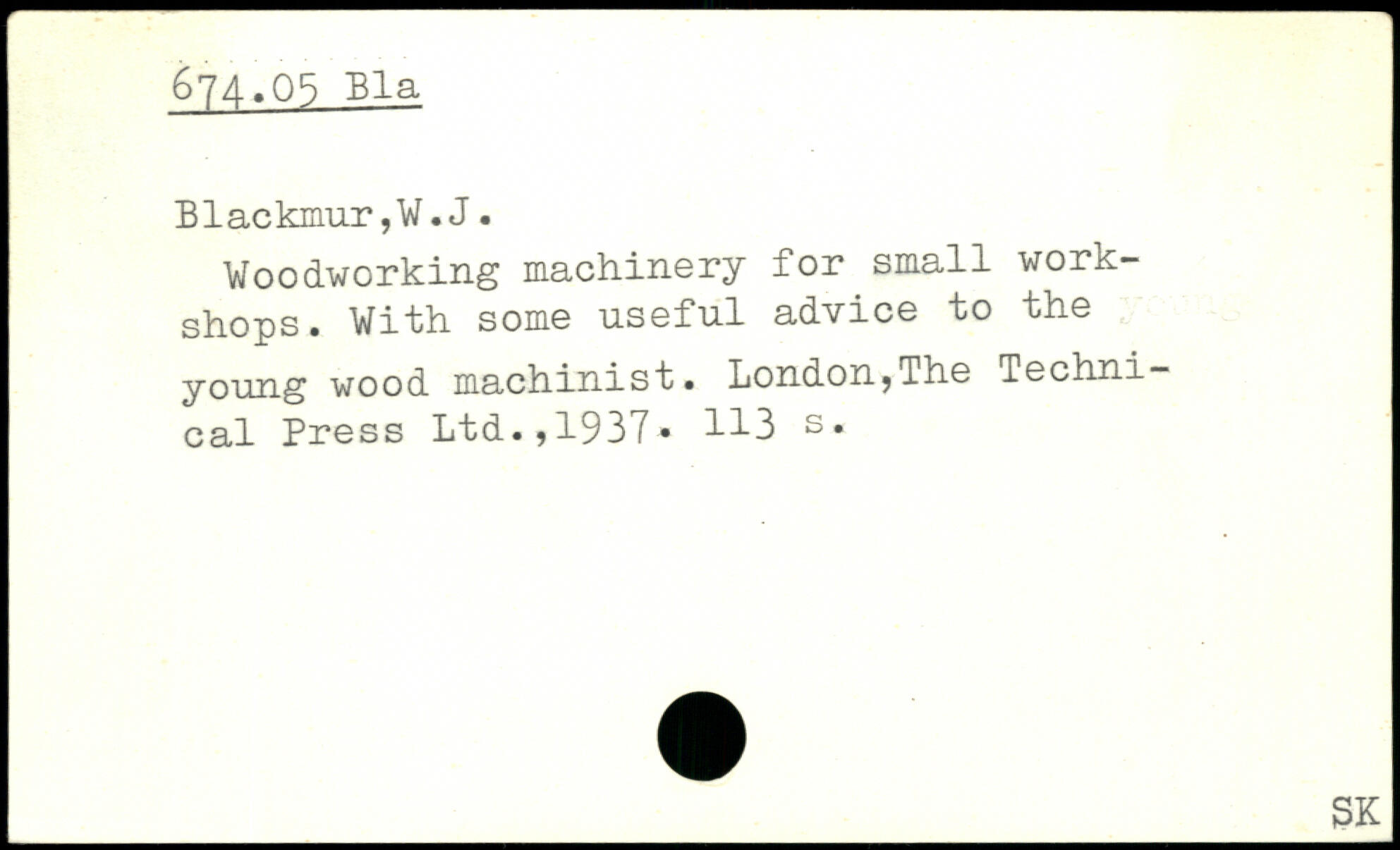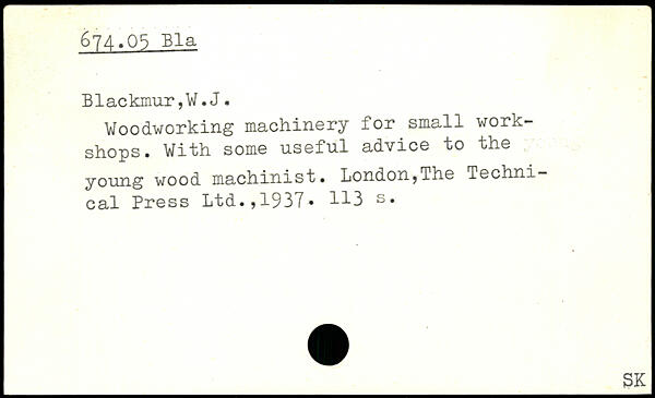 Woodworking machinery for small workshops. With some useful advice to the young wood machinist.