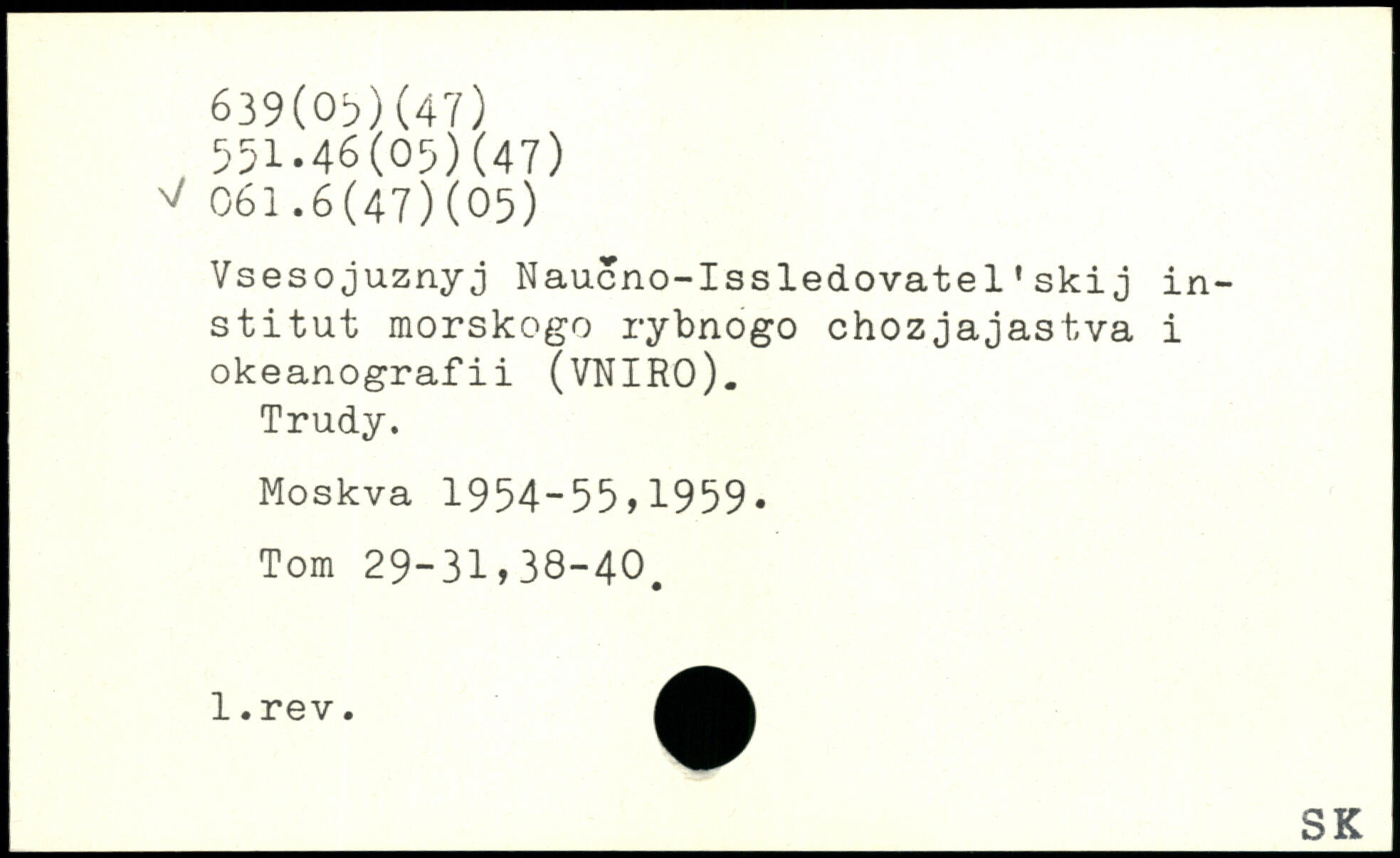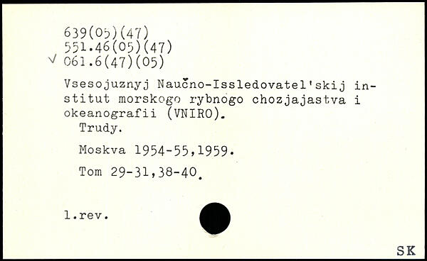 Vsesojuznyj Naucno-Issledovate1.skij in-stitut morskogo rybnogo chozjajastva i okeanografii (VNIRO). Trudy.