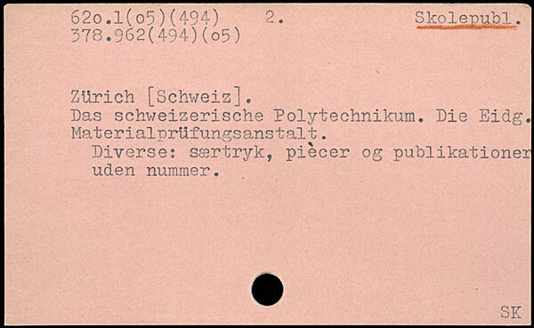 Zürich [Schweis]. Das schweizerische Polytechnikum, Die Eidg. Materialprüfungsanstalt. Diverse: særtryk, piecer og publikationer uden nummer.