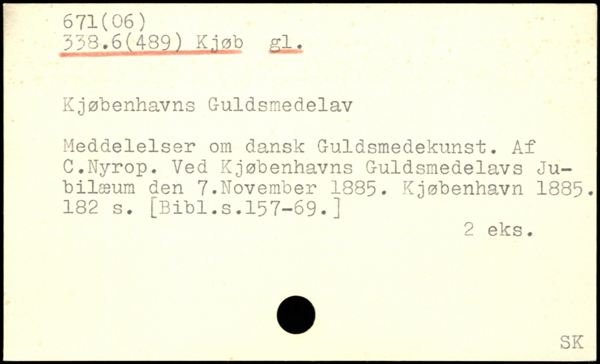 Kjøbenhavns Guldsmedelav Meddelelser om dansk Guldsmedekunst. Af C.Nyrop. Ved Kjøbenhavns Guldsmedelavs Jubilæum den 7.November 1885. Kjøbenhavn 1885.
