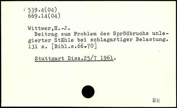 Beitrag zum Problem des Sprödbruchs unlegierter Stähle bei schlagartiger Belastung.
