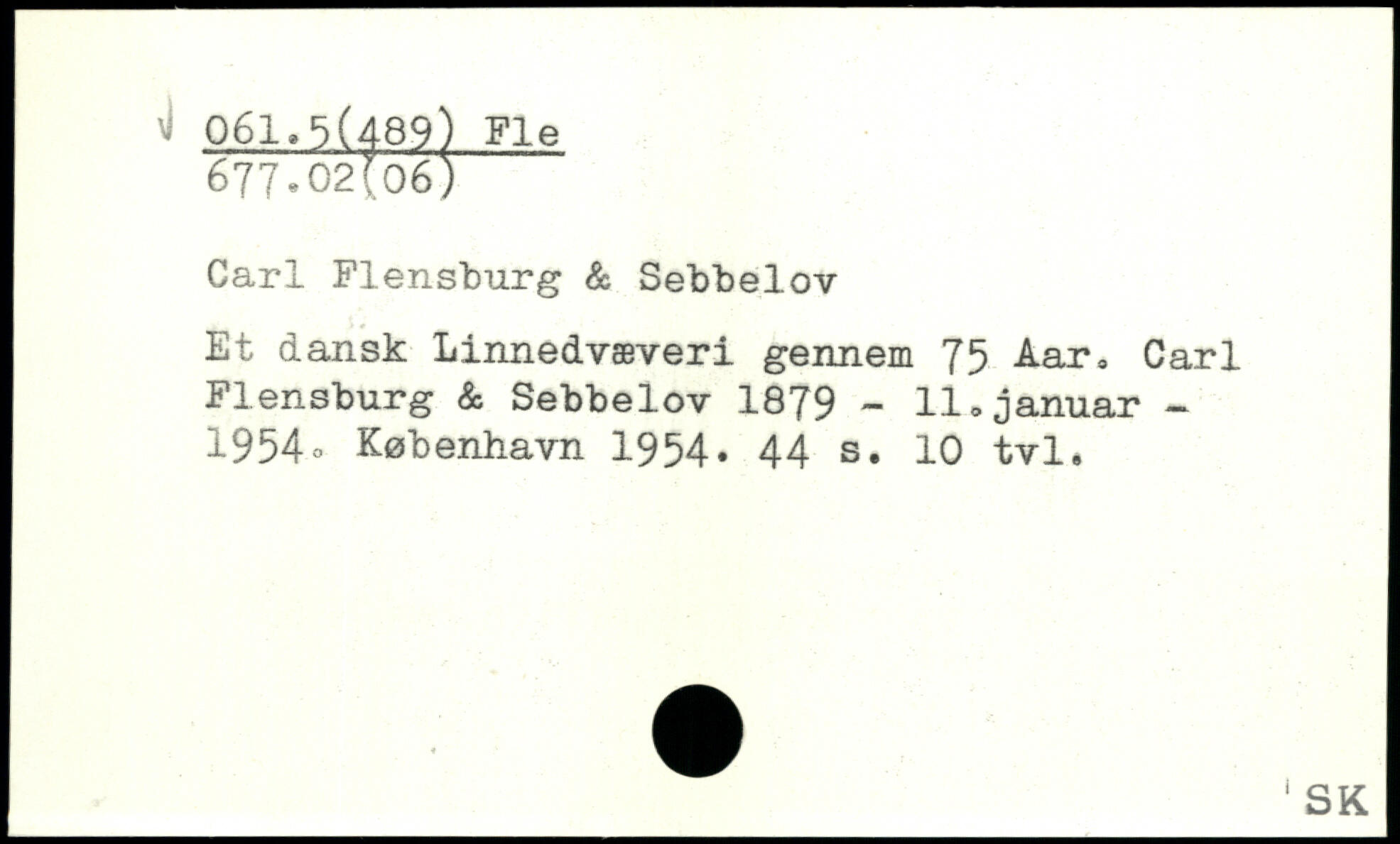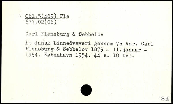 Carl Flensburg & Sebbelov Et dansk Linnedvæveri gennem 75 Åar, Carl Fl ensburg & Sebbelov 1879 - 11 o januar — 1954®