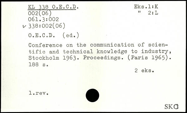 Conference on the communication of scientific and technical knowledge to industry