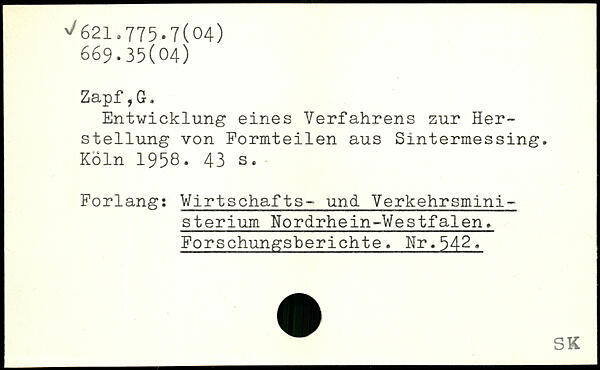 Entwicklung eines Verfahrens zur Herstellung von Formteilen aus Sintermessing.