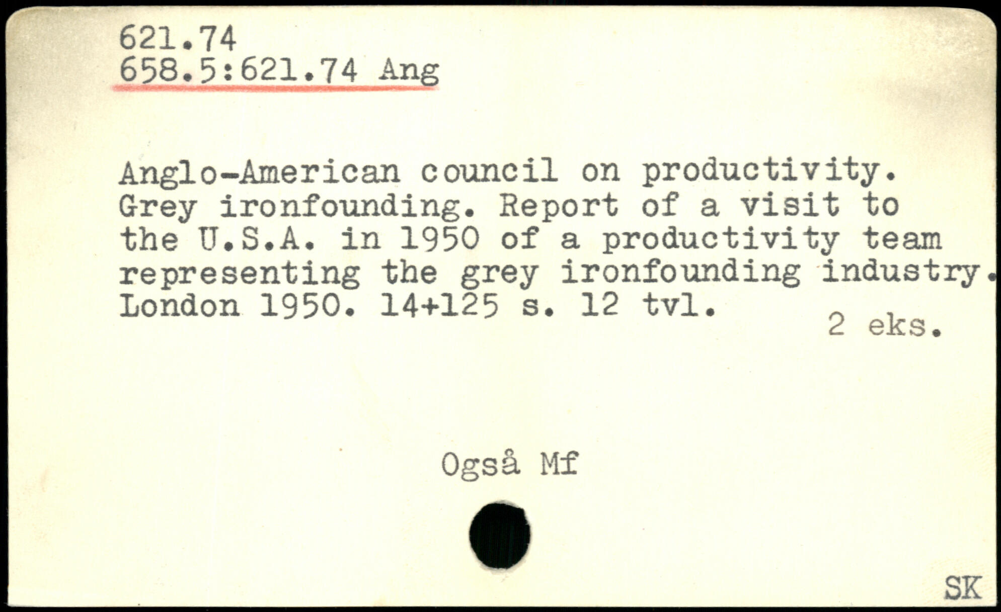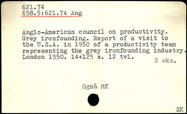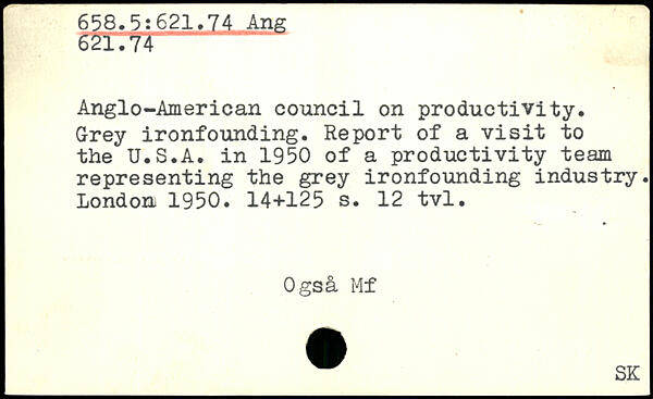 Anglo-American council on productivity. Grey ironfounding. Report of a visit to the U.S.A. in 1950 of a productivity team representing the grey ironfounding industry.