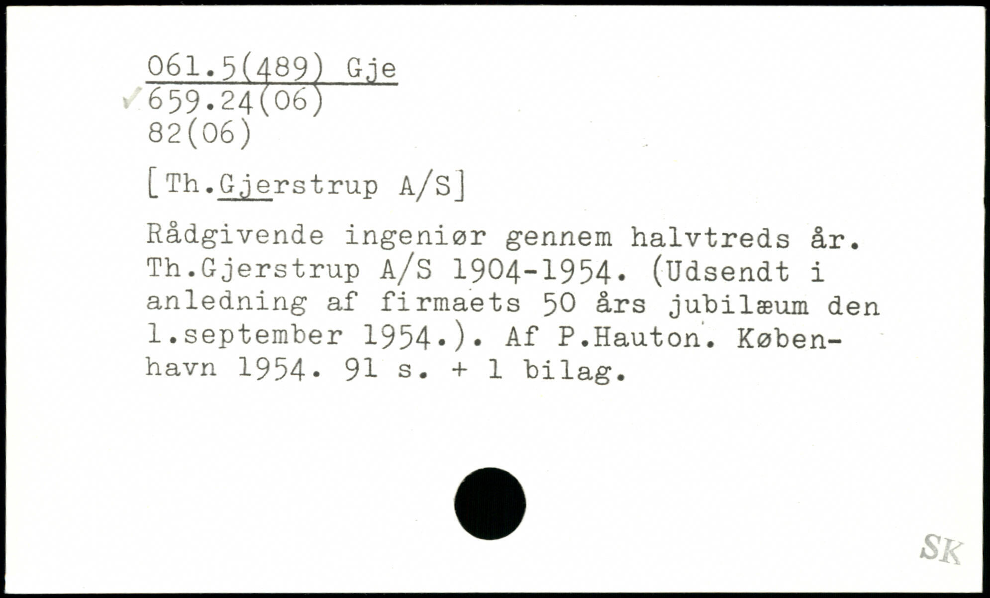 [ Th. Gjerstrup A/sJ Rådgivende ingeniør gennem halvtreds år. Th.Gjerstrup A/S 1904-1954. (Udsendt i anledning af firmaets 50 års jubilæum den 1.september 1954.). Af P.Hauton.