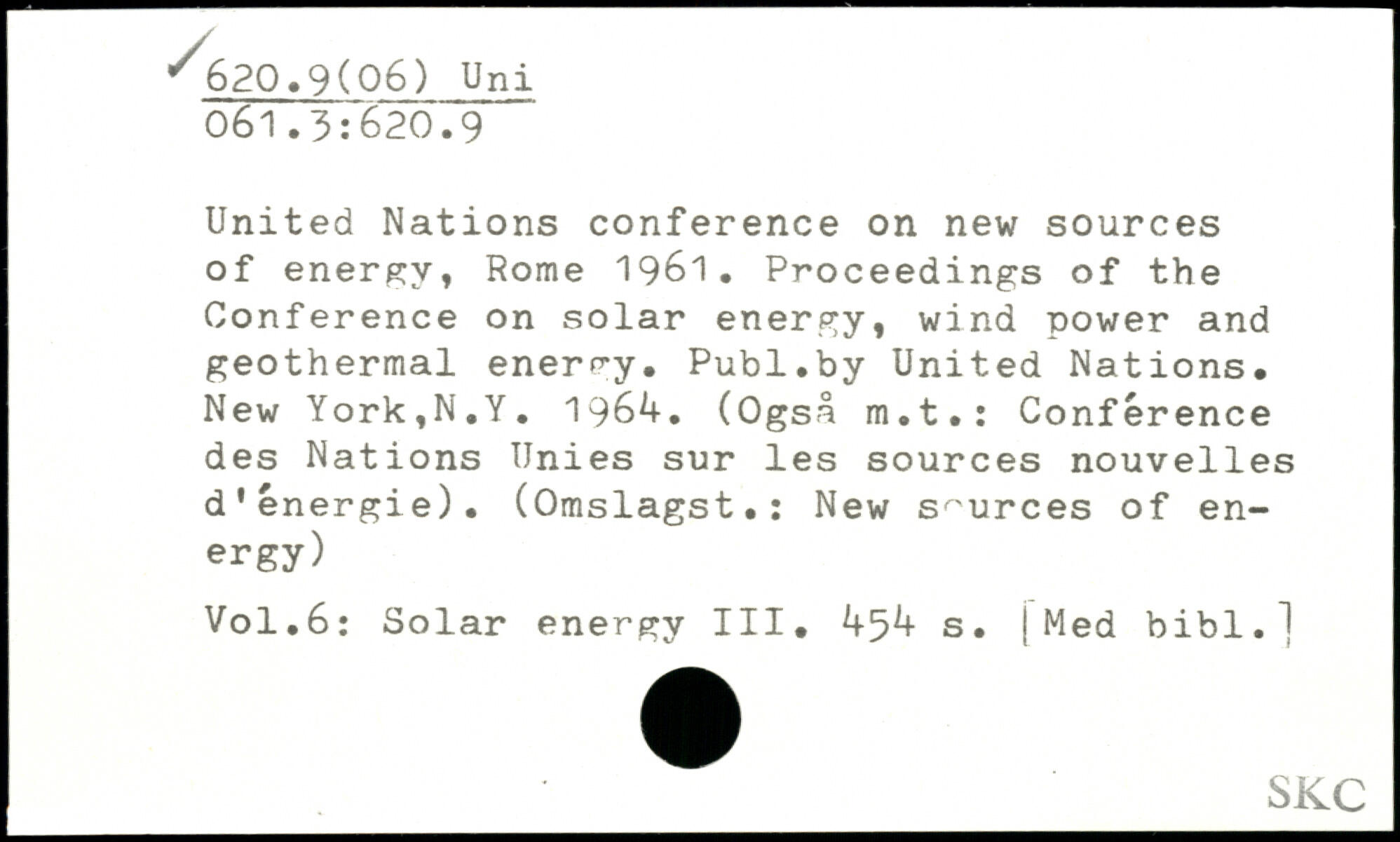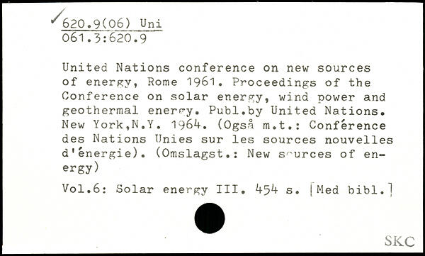 United Nations conference on new sources of energy, Rome 1961. Proceedings of the Conference on solar energy, wind power and geothermal energy.