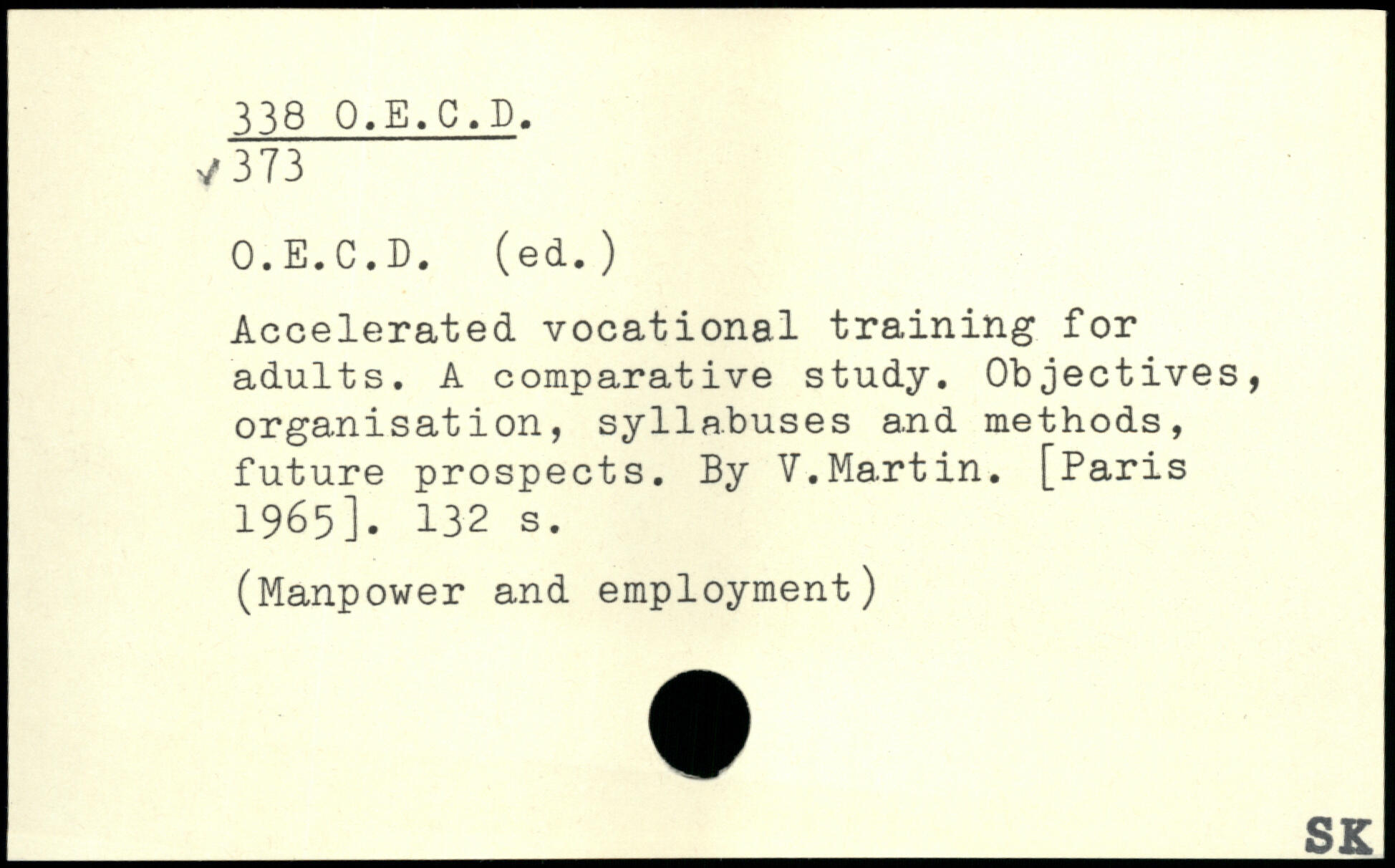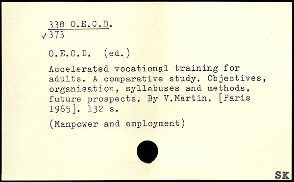 Accelerated vocational training for adults. A comparative study. Objectives, organisation, syllabuses and methods, j future prospects. By V.Martin.