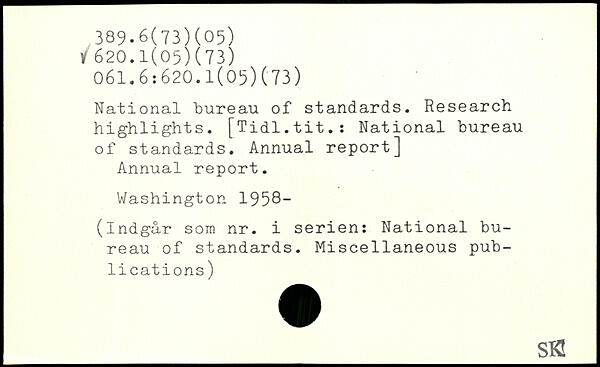 National bureau of standards. Research highlights. [Tidl.tit.: National bureau of standards. Annual report] Annual report.