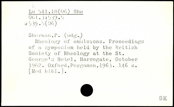 Shorman ,. (ud;. Rheology of emulsions. Proceedings of a symposium held by the British Society of Rheology at the St. George's Hotel, Harrogate, October 190?.