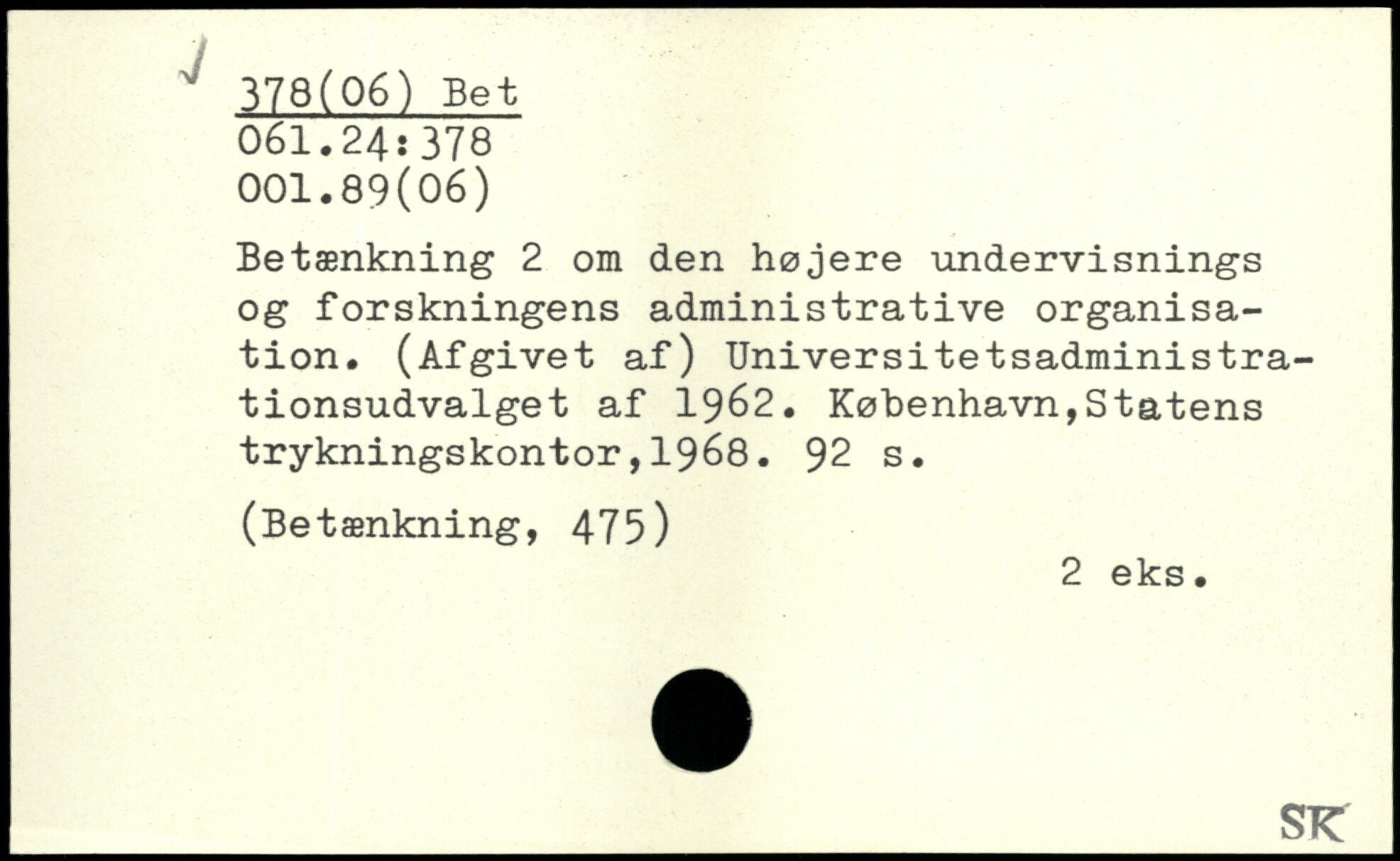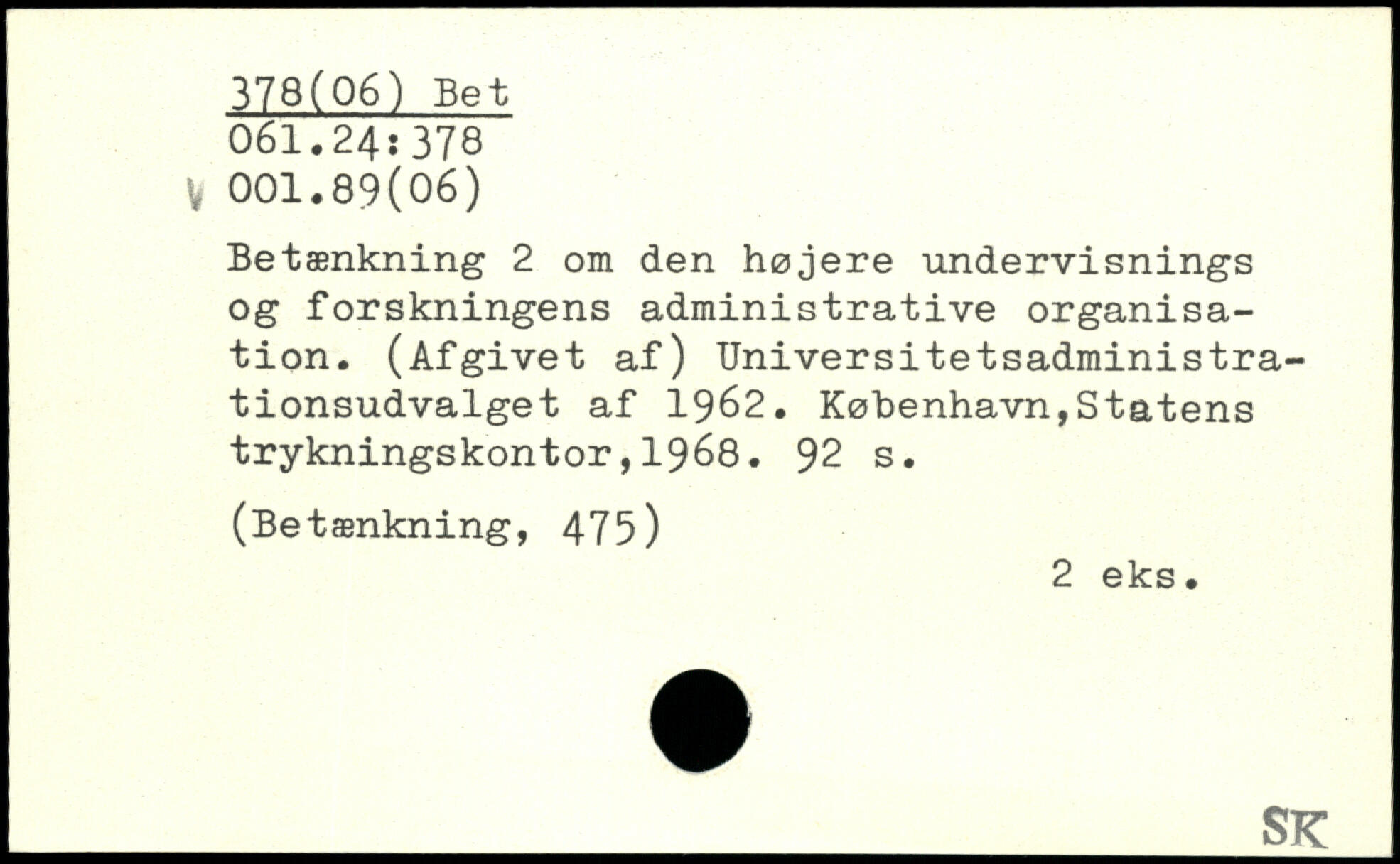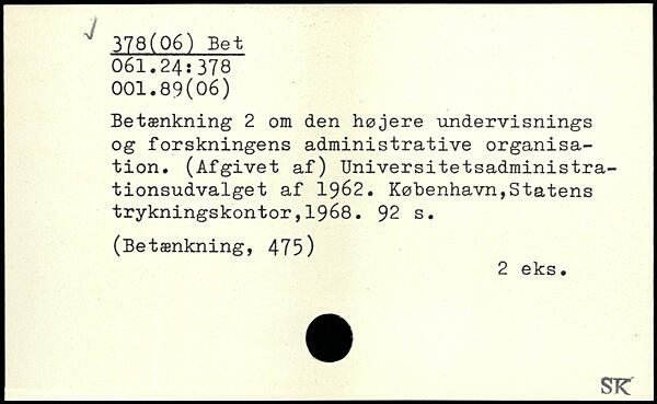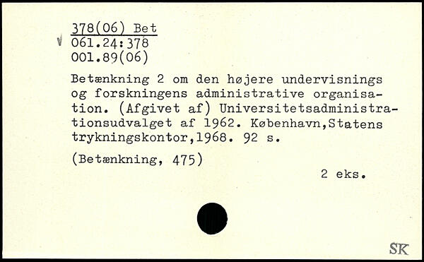 Betænkning 2 om den højere undervisnings og forskningens administrative organisation. (Afgivet af) Universitetsadministrationsudvalget af 1962.