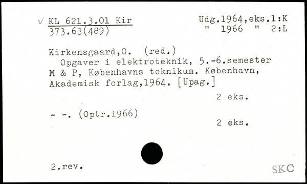 Opgaver i elektroteknik, 5.-6.semester M & P, Københavns teknikum.