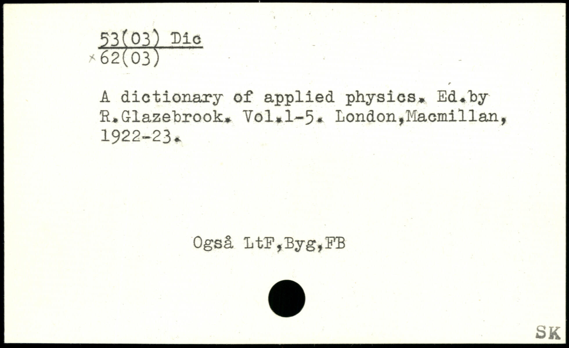 A dictionary of applied physics, Ed.by R,Glazebrook, Vol.l~5.