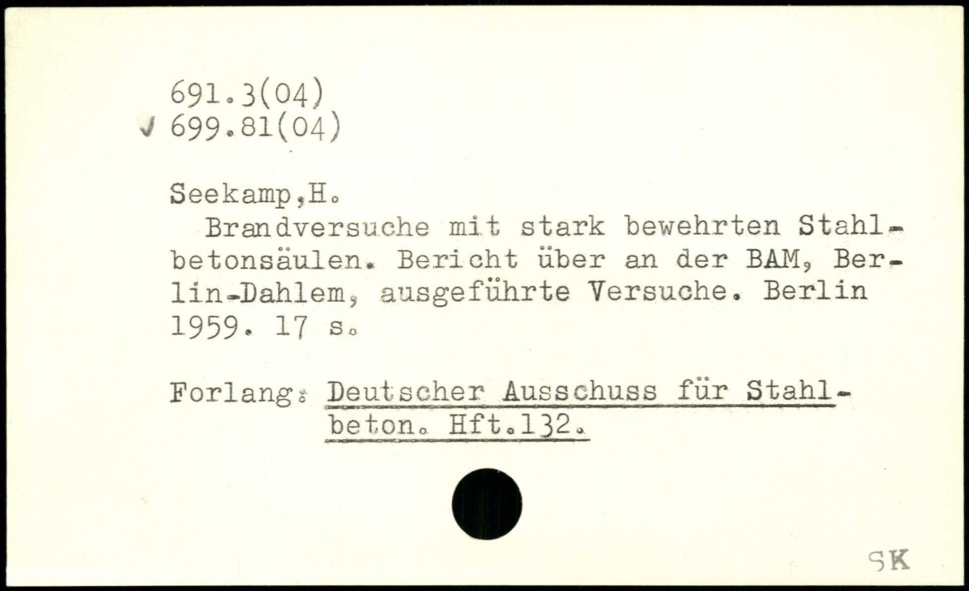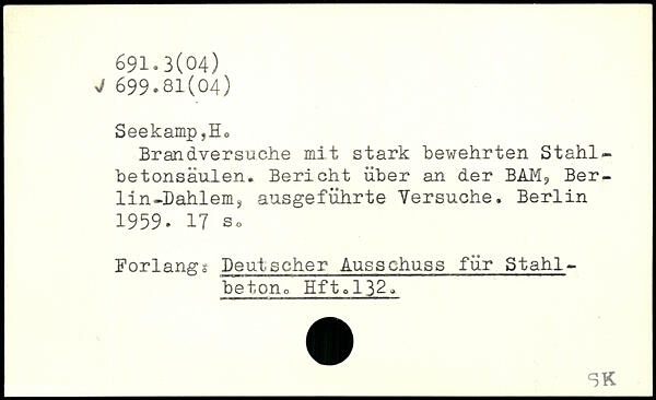 Seekamp SH, Brandversuche mit stark “bewehrten Stahlbetonsäulen. Bericht über an der BAM? Ber-lin-Dahlem? ausgeführte Versuche.