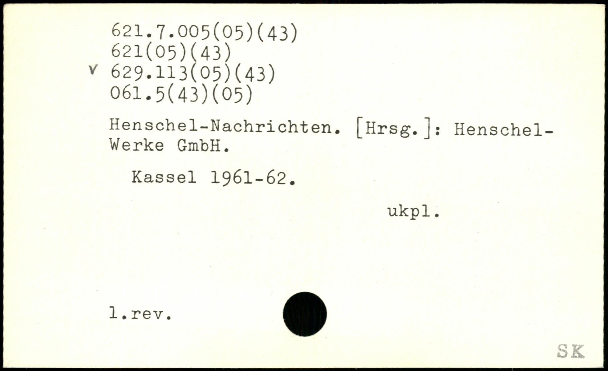 Henschel-Nachrichten. [Hrsg.]: Henschel-Werke GmbH. Kassel 1961-62. ukpl.