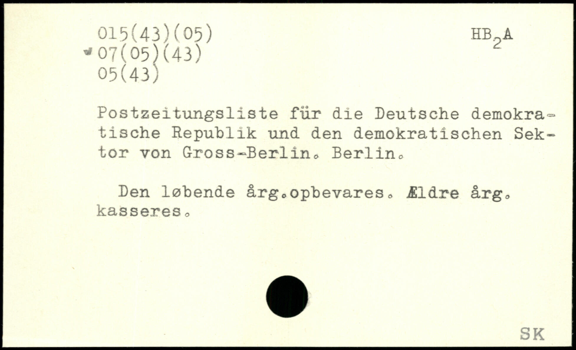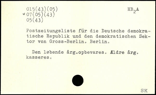 Postzeitungsliste für die Deutsche demokratische Republik und den demokratischen Sektor von Gross-Berlin. Berlin. Den løbende årg. opbevares. Ældre årg. kasseres.