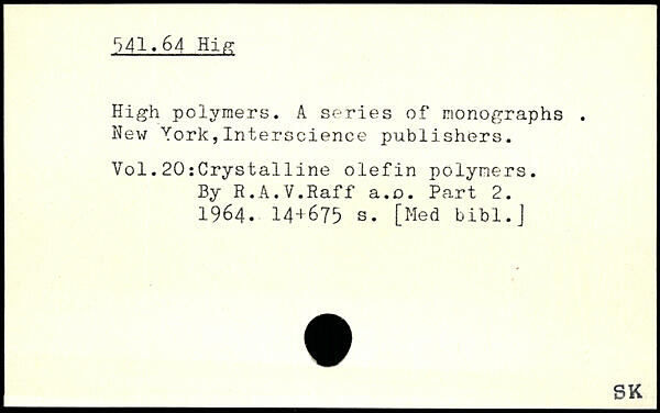 High polymers. A series of monographs. New York,Interscience publishers.