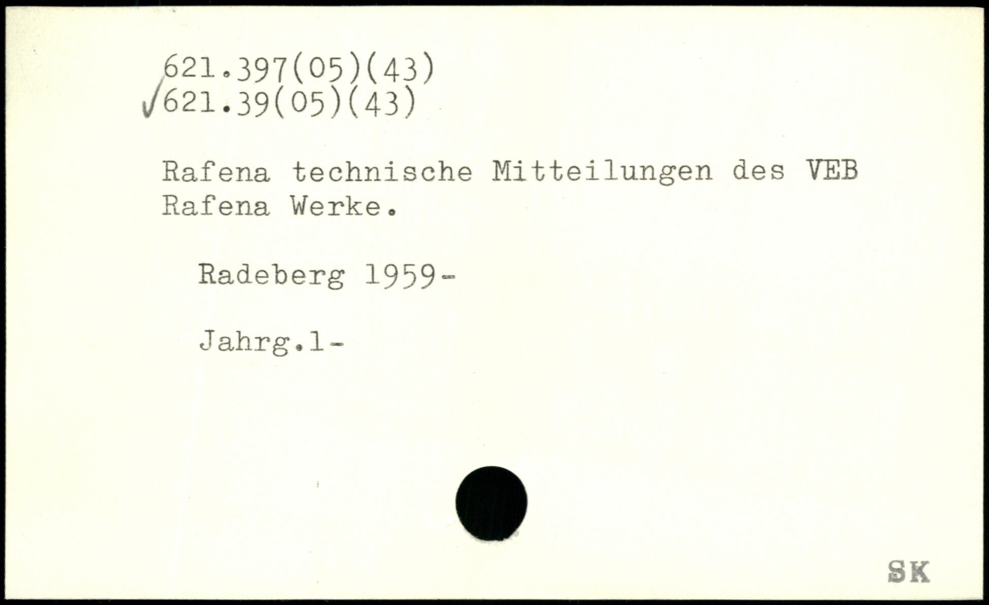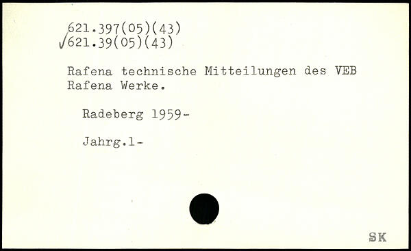 Rafena technische Mitteilungen des VEB Rafena Werke. Radeherg 1959“ Jahrg.1-