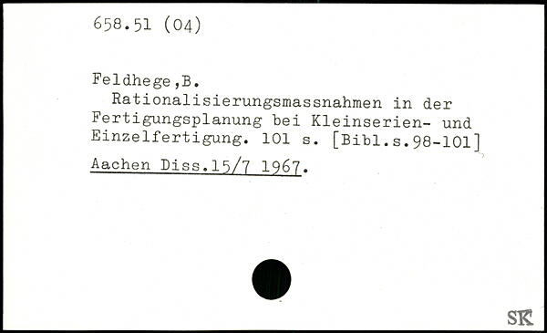 Rationalisierungsmassnahmen in der Fertigungsplanung bei Kleinserien- und Einzelfertigung.