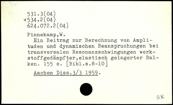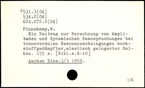Ein Beitrag zur Berechnung von Amplituden und dynamischen Beanspruchungen hei transversalen Resonanzschwingungen Werkstoff gedämpfter , elastisch gelagerter Balken