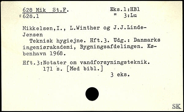 Teknisk hygiejne. Hft.3. Udg.: Danmarks ingeniørakademi, Bygningsafdelingen.