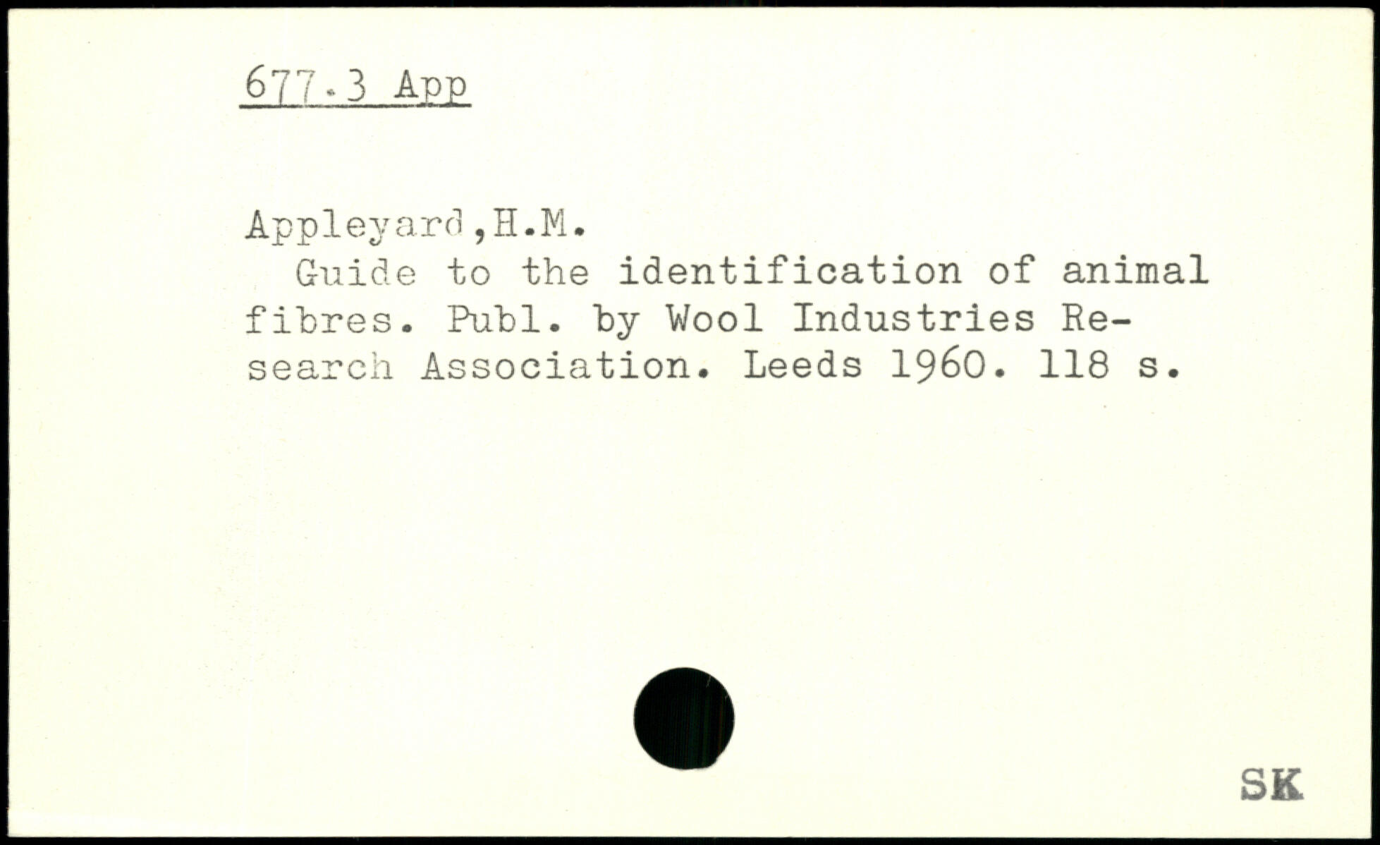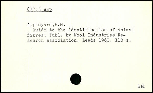 App1eyard,H.M. Guide to the identification of animal fibres.