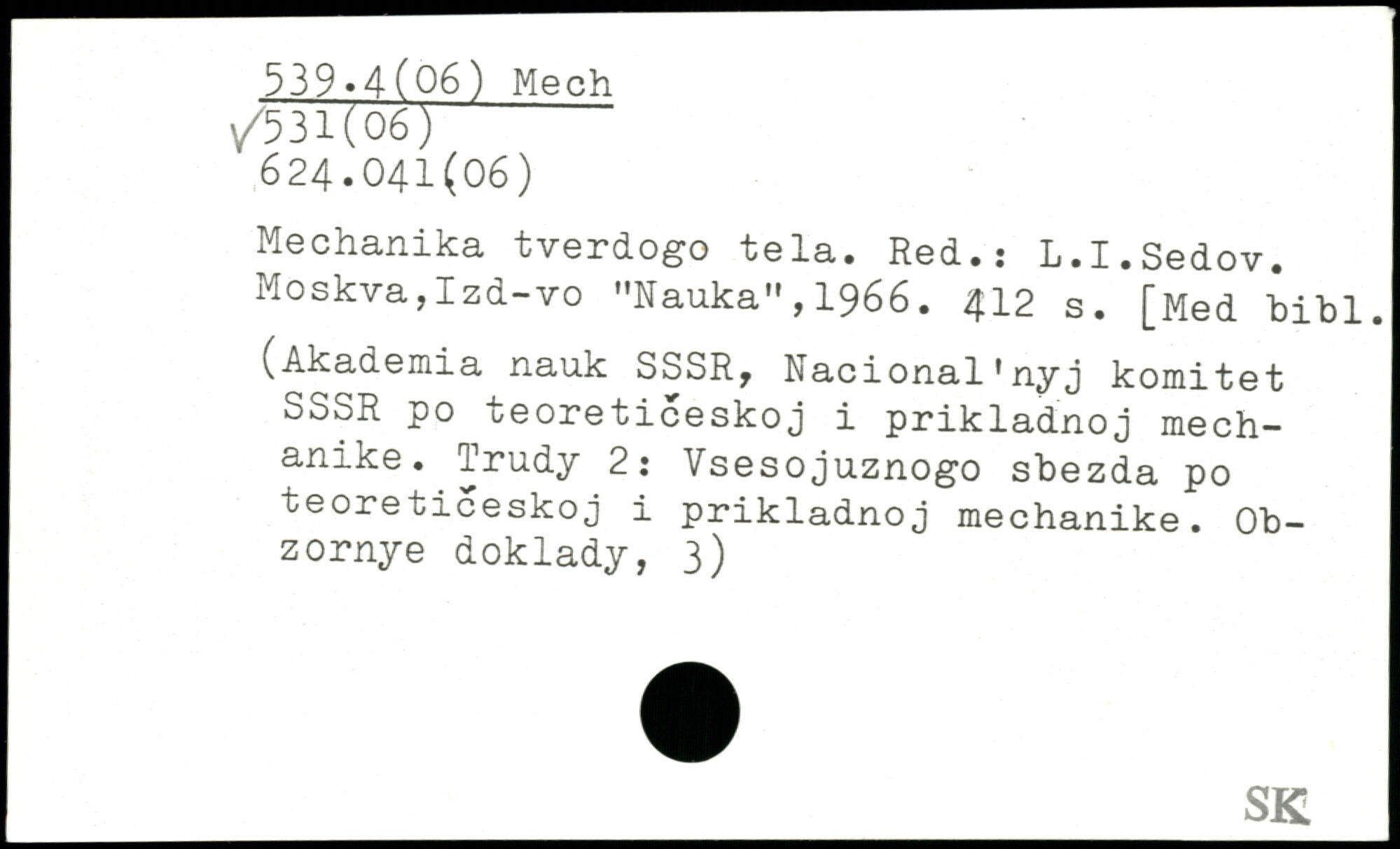 Mechanika tverdogo tela. Red.: L.I.Sedov. Moskva,Izd-vo "Nauka" , 1966. $