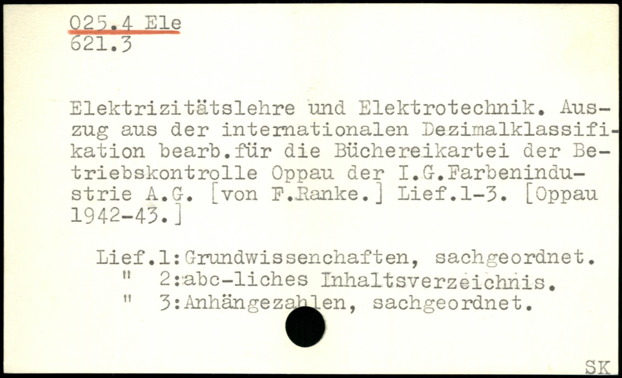 Elektrizitätslehre und Elektrotechnik. Auszug aus der internationalen Lezimalklassifi-kation bearb.für die Büchereikartei der Betrieb skont rolle Oppau der I.G-. Barben Industrie A.Gr. i von F.Hanke.j Lief.1-3.