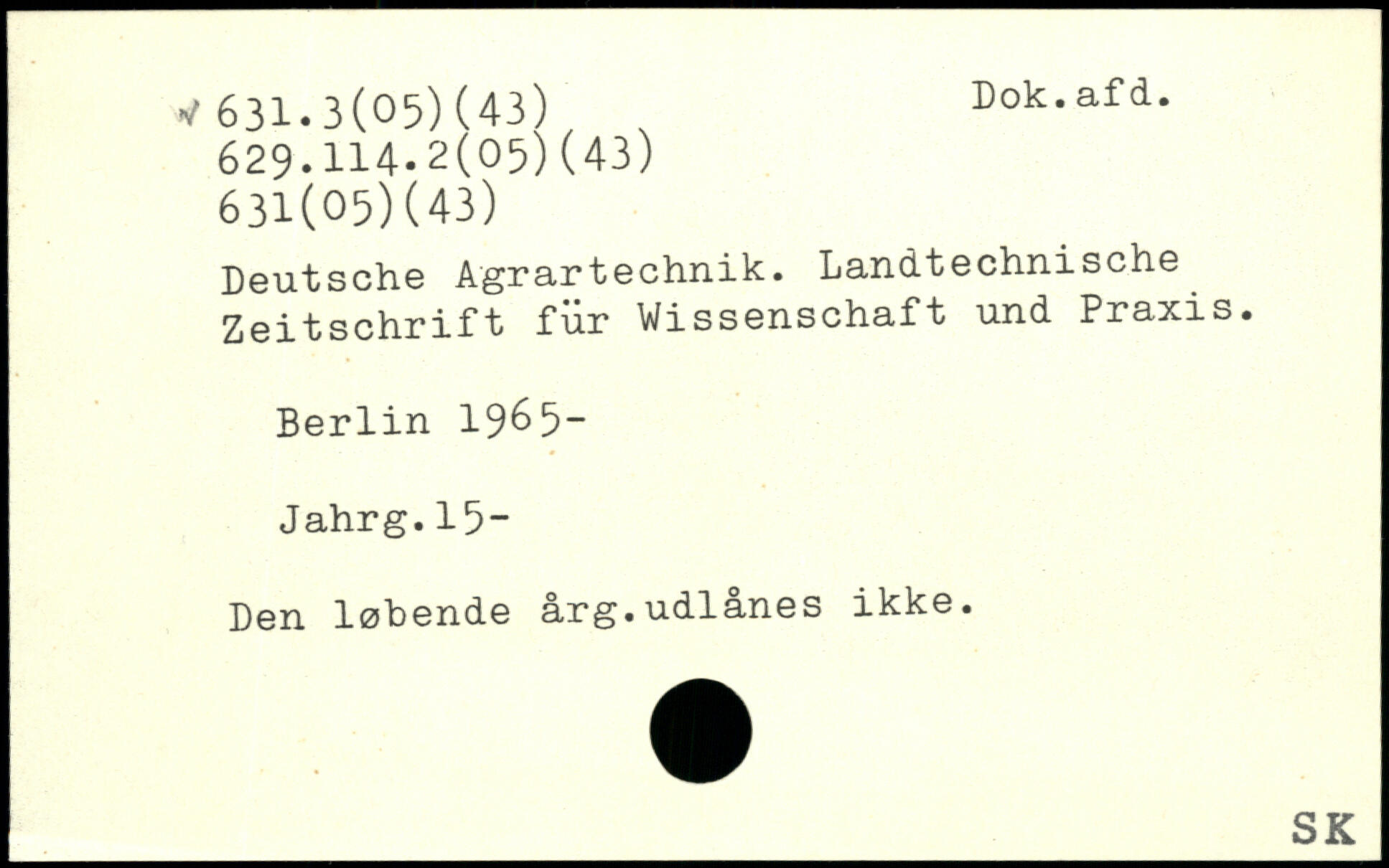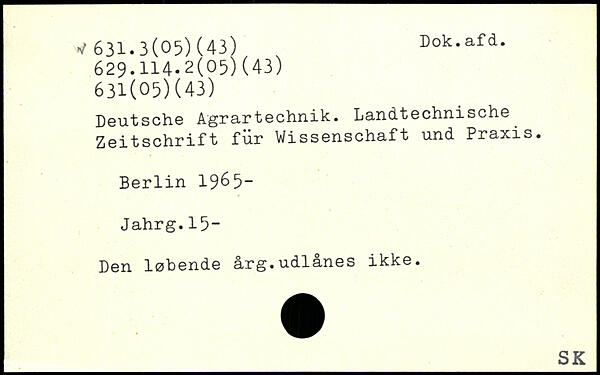 Deutsche Agrartechnik. Landtechnische Zeitschrift für Wissenschaft und Praxis. Berlin 19^5_ Jahrg.15- Den løbende årg.udlånes ikke.