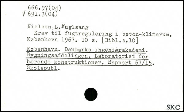 Nielsen,L.^uglsang Krav til fugtregulering i beton-klimarum.