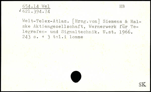Welt-Telex-Atlas. [Hrsg.von] Siemens & Halske Aktiengesellschaft, Wernerwerk für Telegrafen- und Signaltechnik. U.st. 1966.