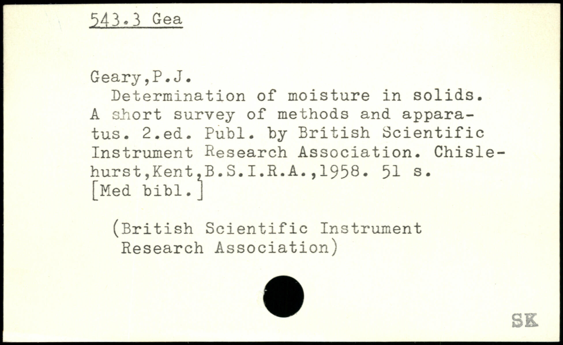 Determination of moisture in solids. A short survey of methods and apparatus.
