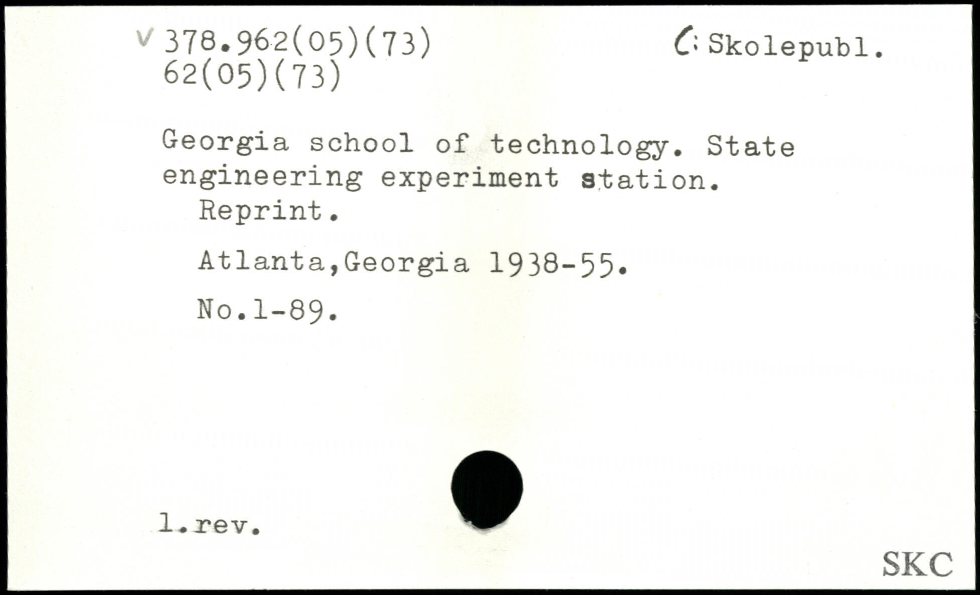 Georgia school of technology. State engineering experiment station. Reprint. Atlanta,Georgia 1938-55, No.1-89.