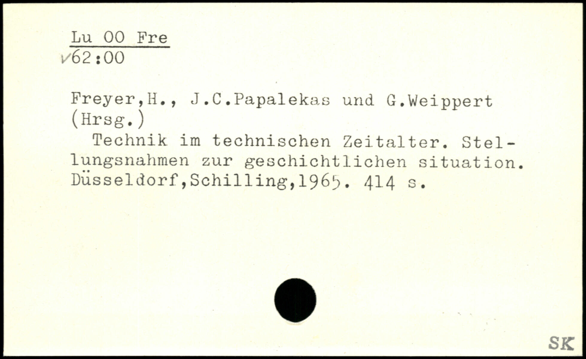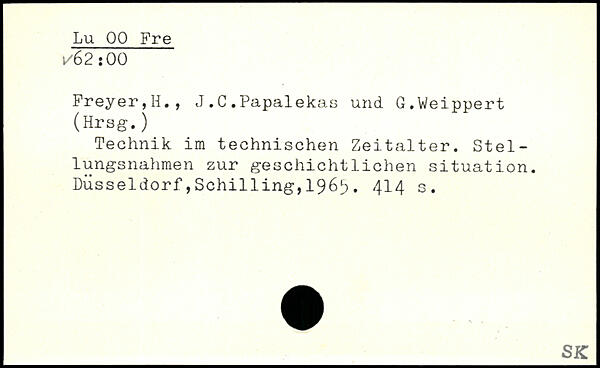 Technik im technischen Zeitalter. Stellungsnahmen zur geschichtlichen Situation. Düsseldorf,Sch1111ng,1969.