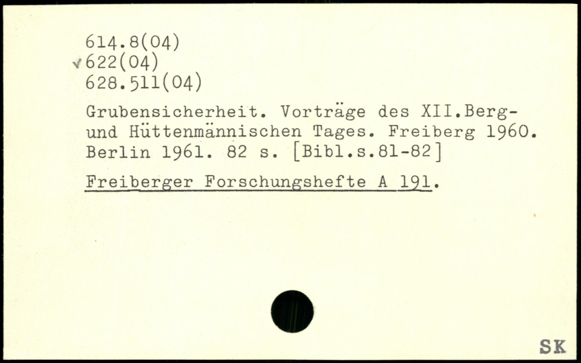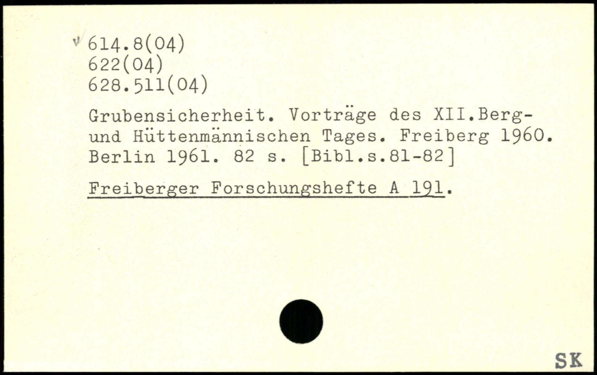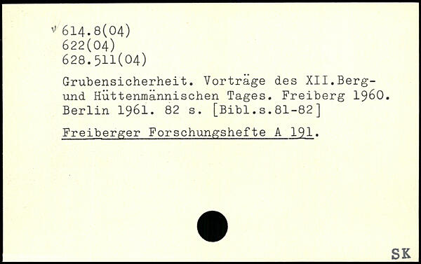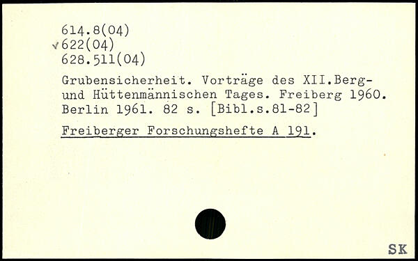 Grubensicherheit. Vortrage des XII.Berg-und Hüttenmännischen Tages. Freiberg 1960.