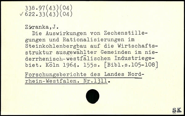Z j/ranka, J. Die Auswirkungen von Zechenstille-gungen und Rationalisierungen im Steinkohlenbergbau auf die Wirtschaftsstruktur ausgewählter Gemeinden im nieder rheni sch- westfalischen Industriegebiet.