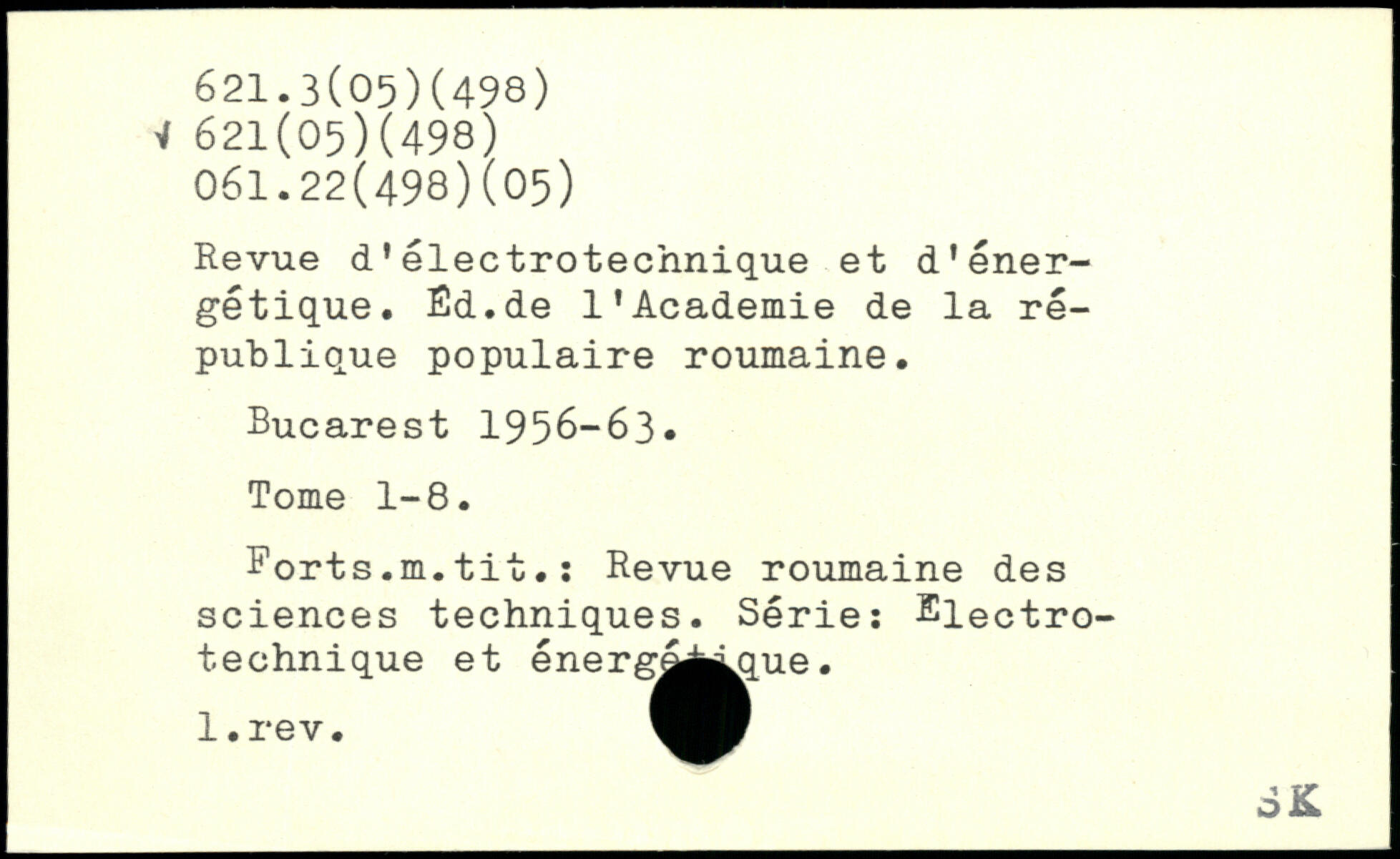 Revue d. électrotechnique et d’inergétique. Ëd.de l'Academie de la république populaire roumaine.
