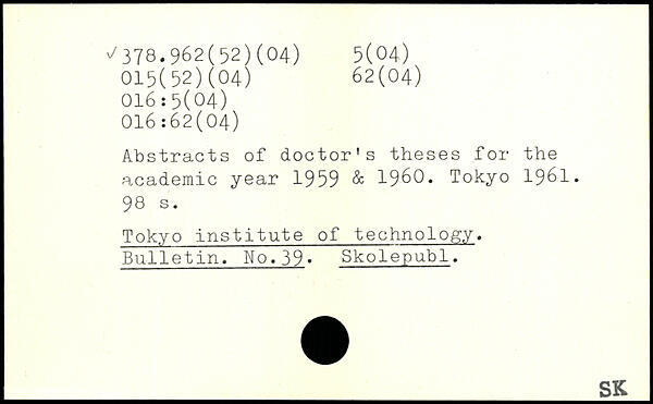 UDK: 378.962(52)(04), 5(04), 015(52)(04), 62(04), 016:5(04), 016:62(04)