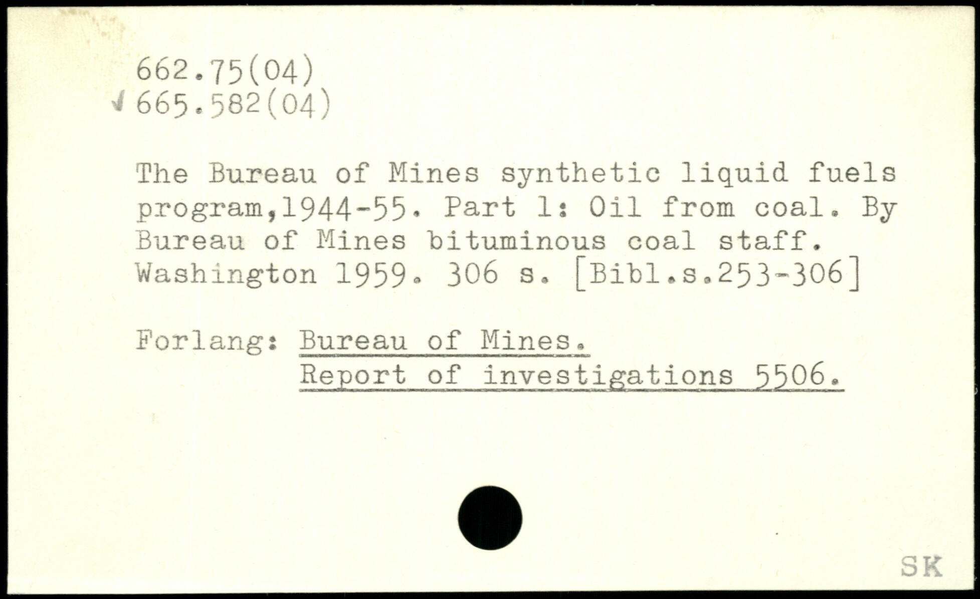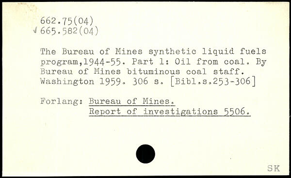 The Bureau of Mines synthetic liquid fuels program,1944-55. Part Is Oil from coal. By Bureau of Mines bituminous coal staff.