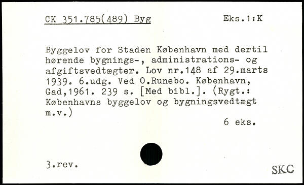 Byggelov for Staden København med dertil f hørende bygnings-, administrations- og afgiftsvedtægter. Lov nr.148 af 29,niarts 1939.