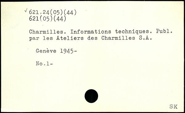 Charmilles. Informations techniques. Publ. par les Ateliers des Charmilles S.À. Genève 1945“ No.l-