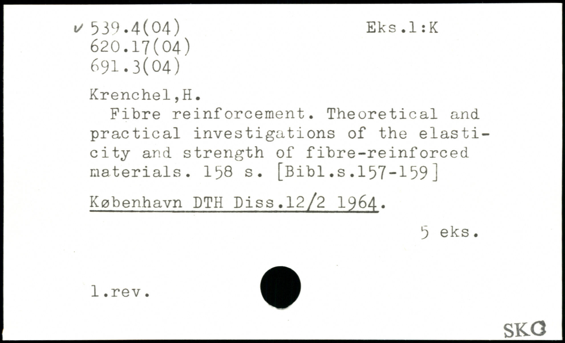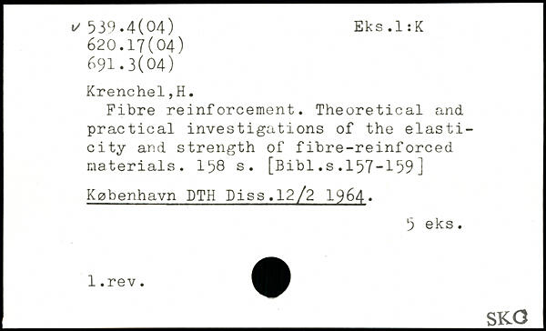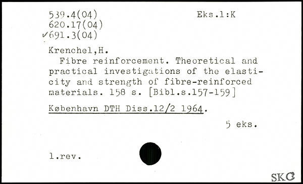 Fibre reinforcement. Theoretical and practical investigations of the elasticity and strength of fibre-reinforced materials.