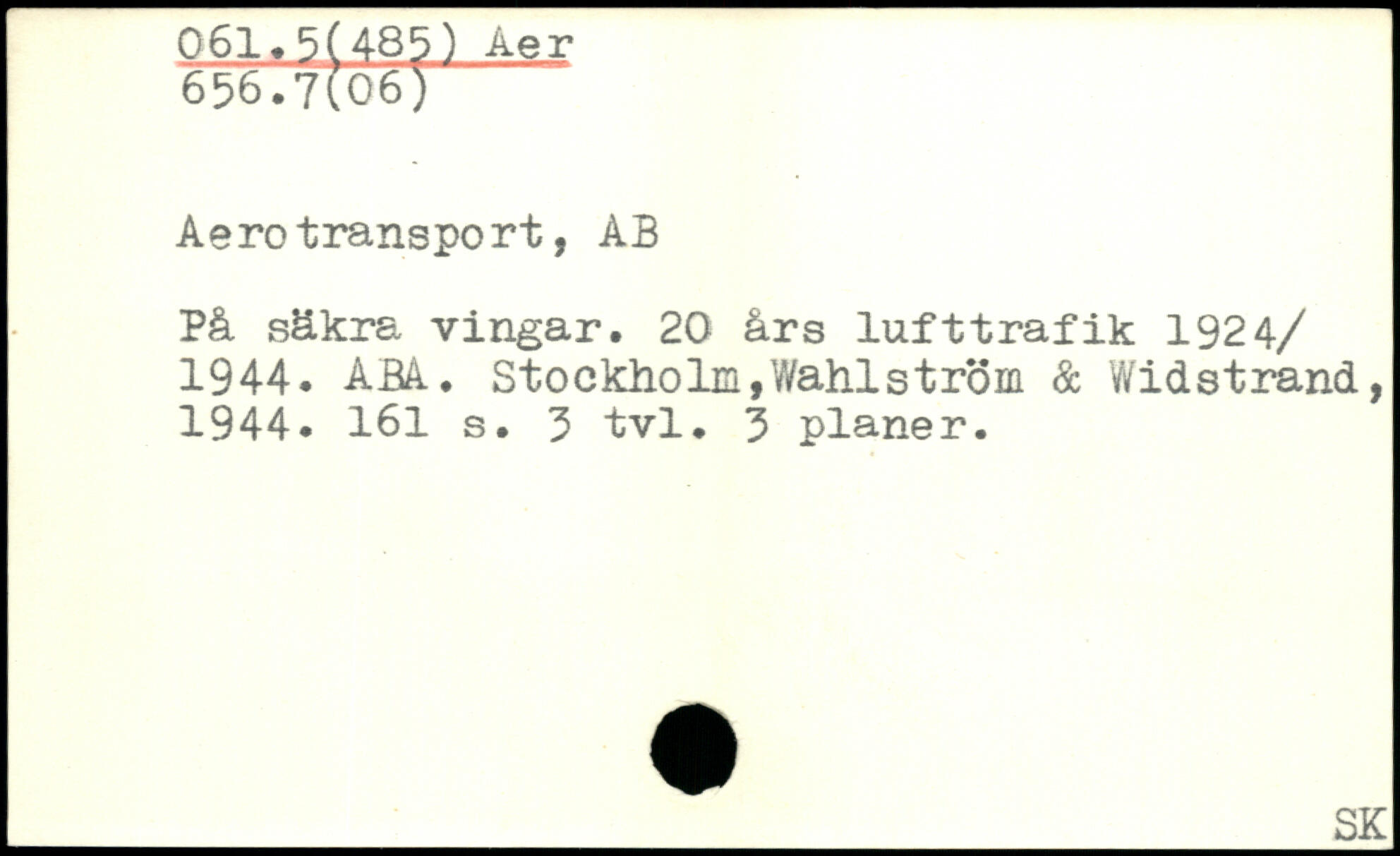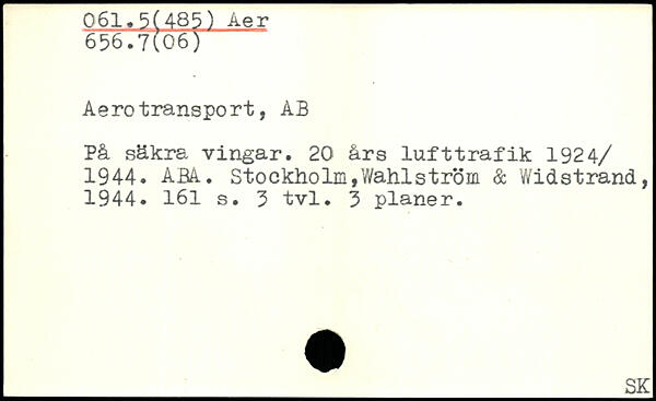 På säkra vingar. 20 års lufttrafik 1924/ 1944. ABA.