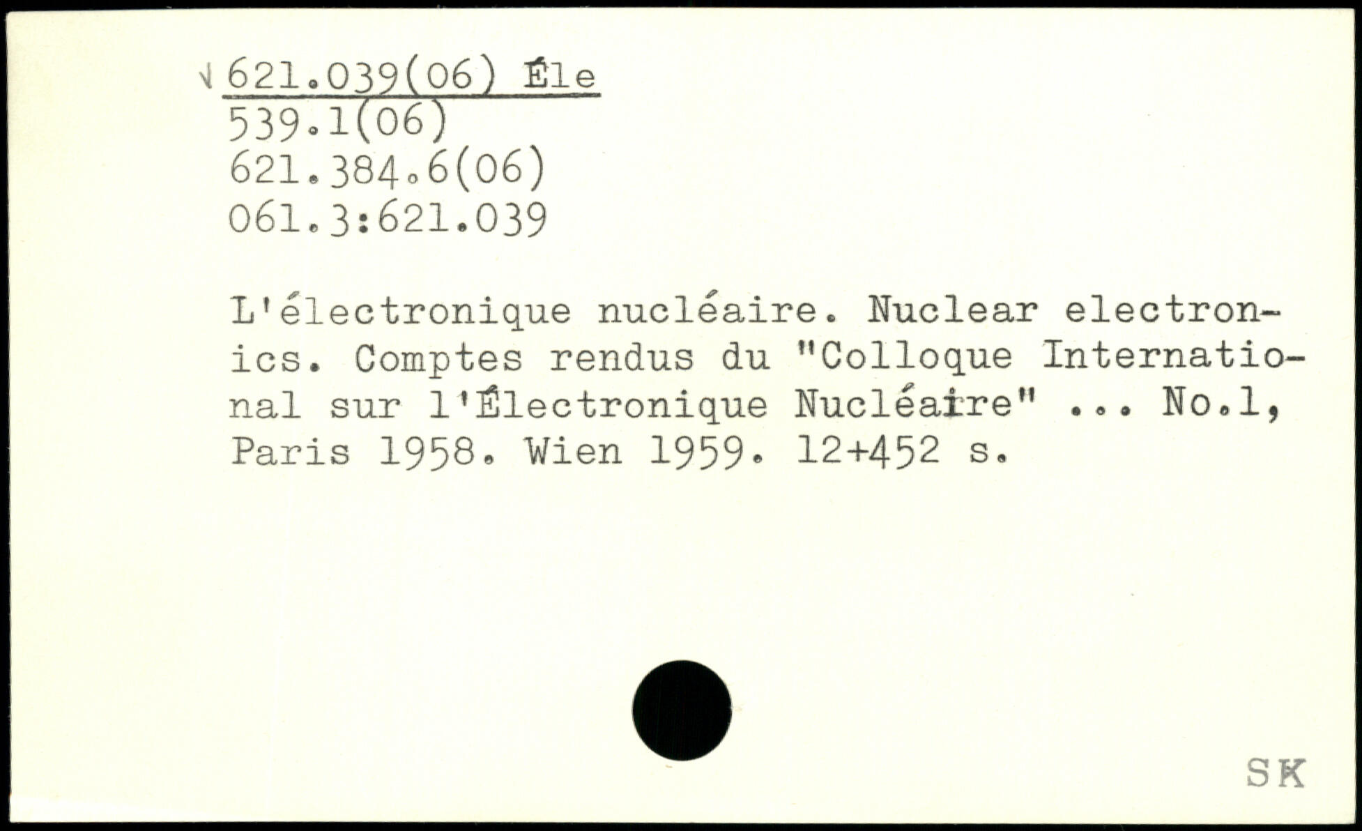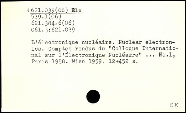 L’électronique nucléaire. Nuclear electronics. Comptes rendus du "Colloque International sur 1’Électronique Nucléaire" ... No.l