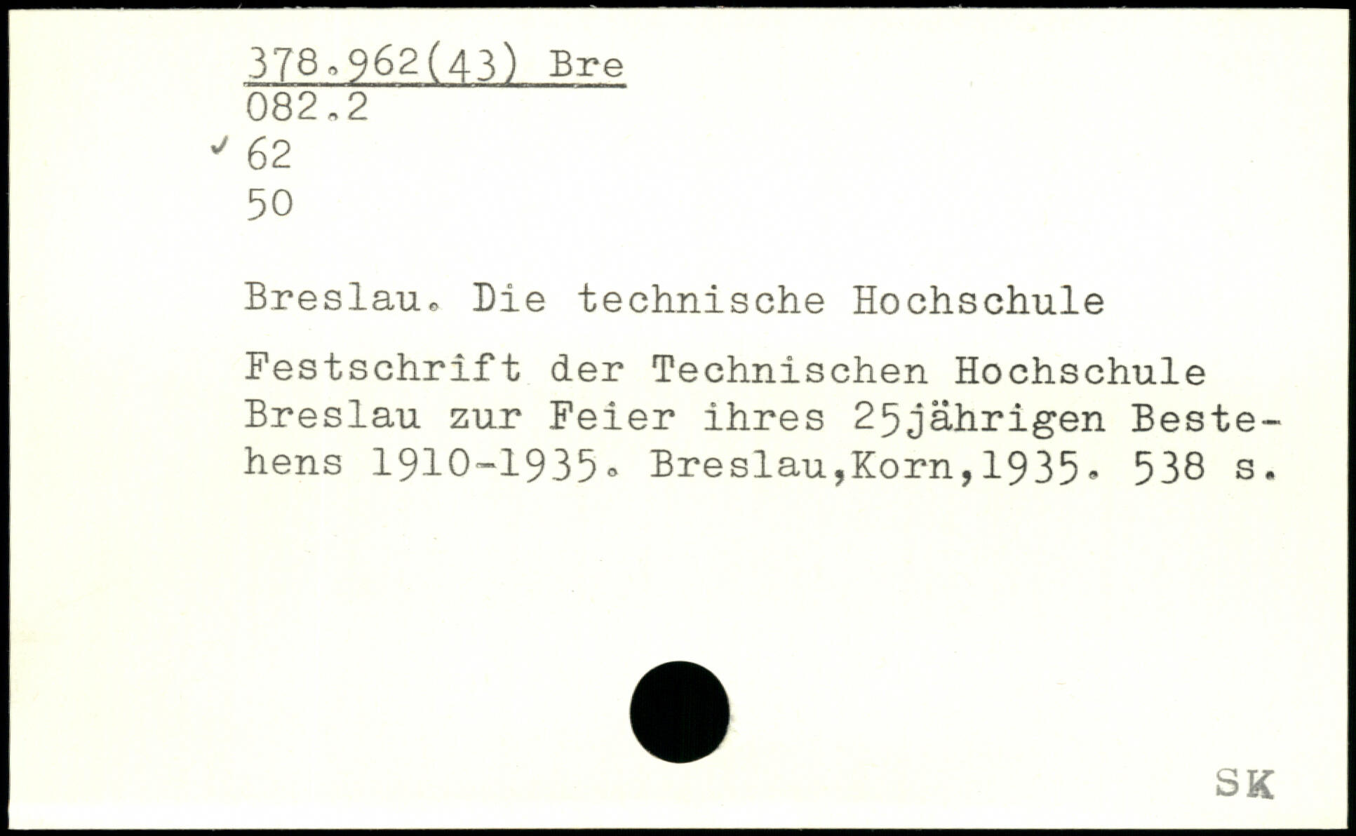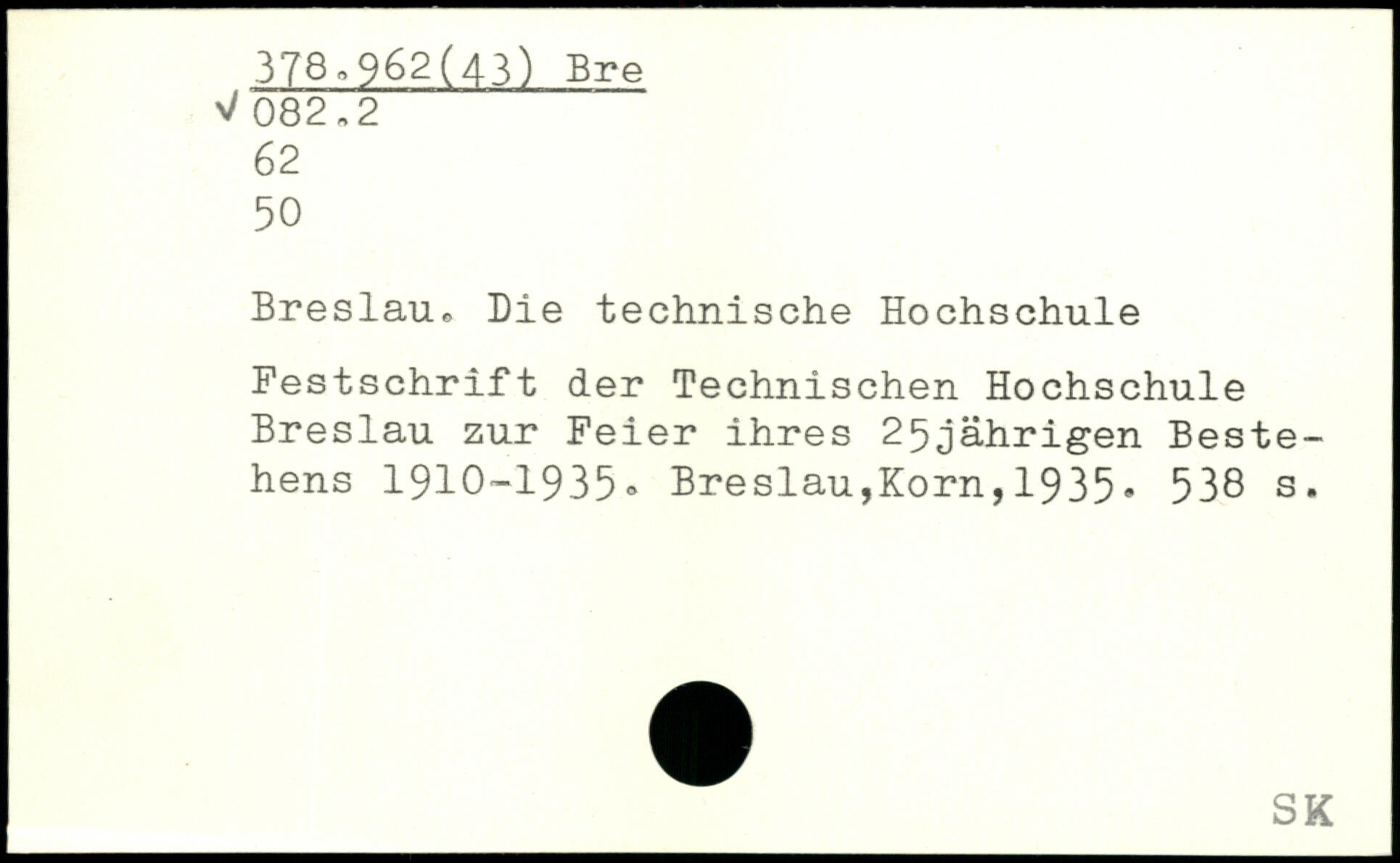 Breslau,, Die technische Hochschule Festschrift der Technischen Hochschule Breslau zur Feier ihres 25jährigen Bestehens 1910-1935.