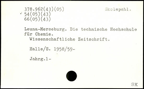 Leuna-Merseburg. Die technische Hochschule für Chemie. Wissenschaftliche Zeitschrift. Halle/S. 1958/59-Jahrg.l-