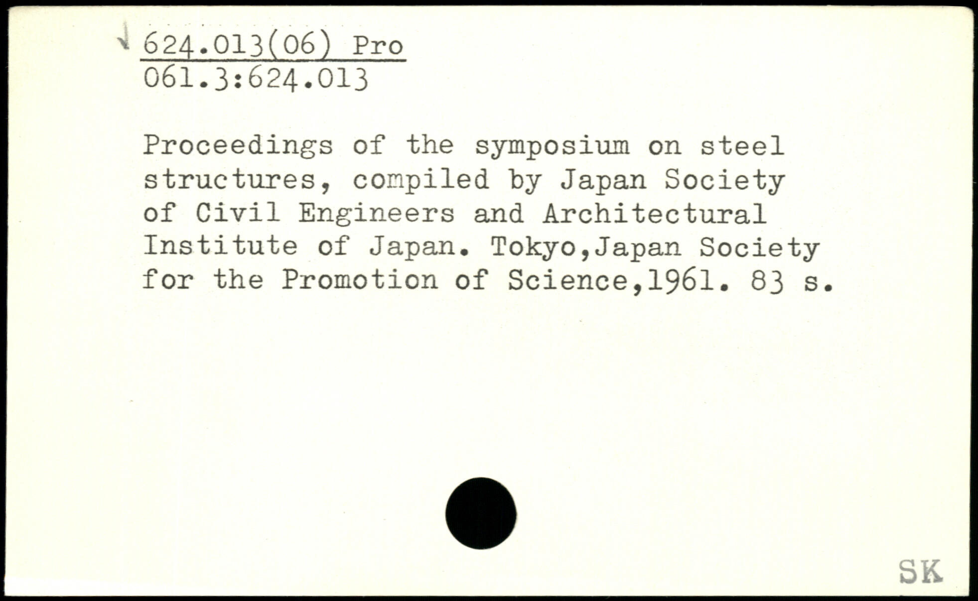 Proceedings of the symposium on steel structures, compiled by Japan Society of Civil Engineers and Architectural Institute of Japan. Tokyo,Japan Society for the Promotion of Science,1961.